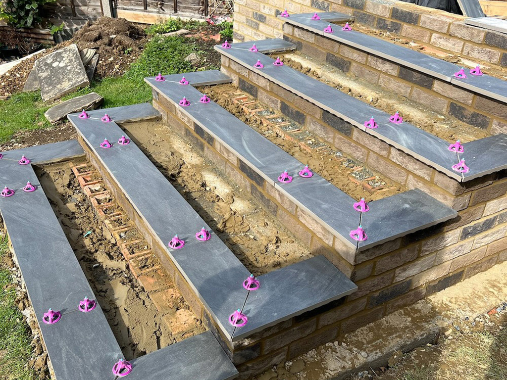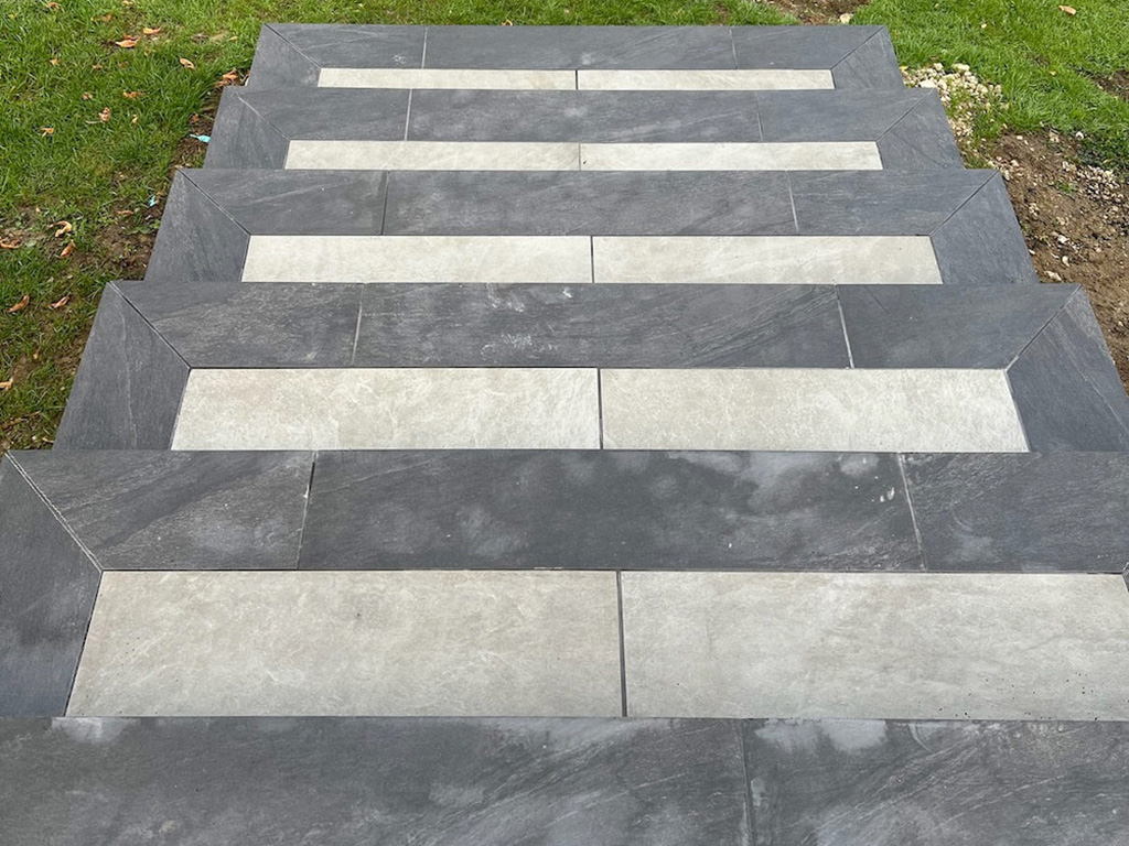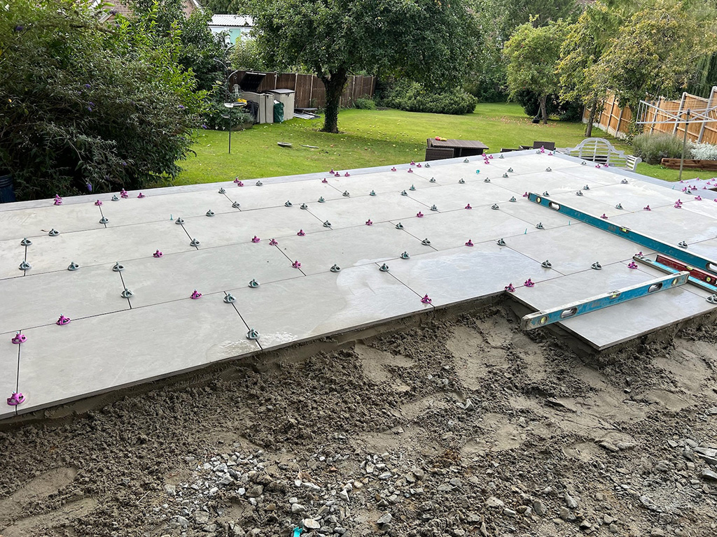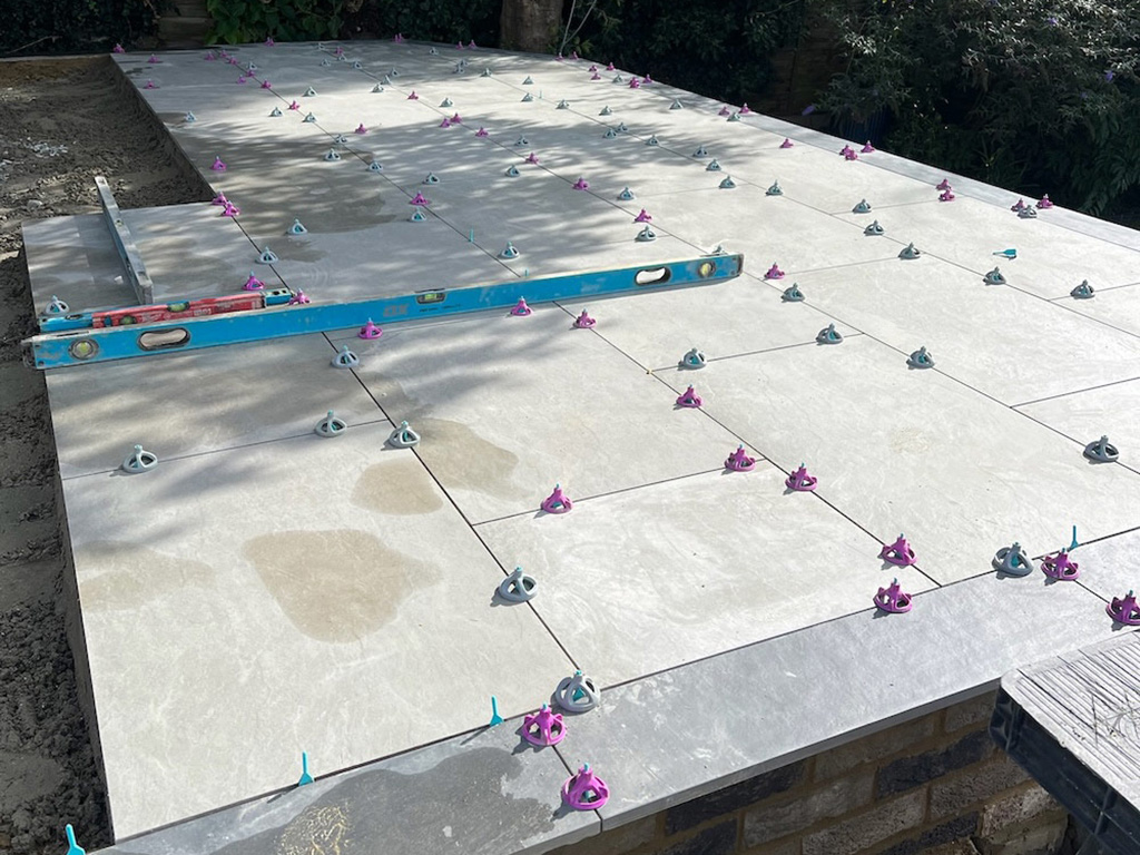 The build required precise setting out and multiple level transitions to create a seamless connection between the patio and surrounding areas.